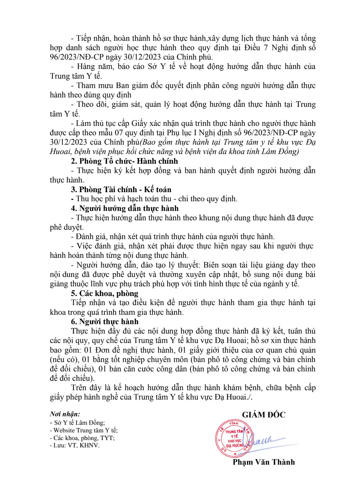 Kế hoạch Hướng dẫn thực hành khám, chữa bệnh cấp giấy phép hành nghề