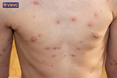 Những nốt mụn nước này xuất hiện toàn thân, mọc kín trên cơ thể bệnh nhân. Mọc cả vào niêm mạc miệng gây khó khăn trong việc ăn uống. Một số trường hợp bị nhiễm trùng mụn nước sẽ có kích thước lớn hơn, dịch bên trong mụn nước màu đục do chứa mủ.